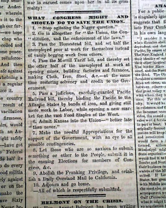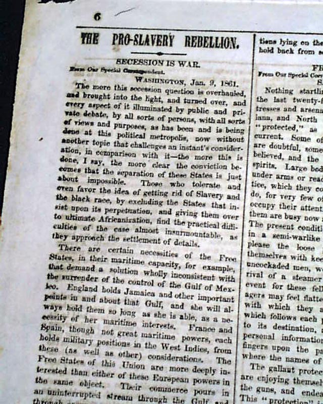 NEW YORK TRIBUNE, Jan. 11, 1861 From just 4 months before the outbreak of the Civil War, it is not surprising that much content within related to the brewing troubles.