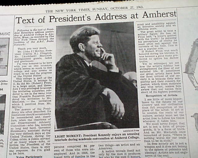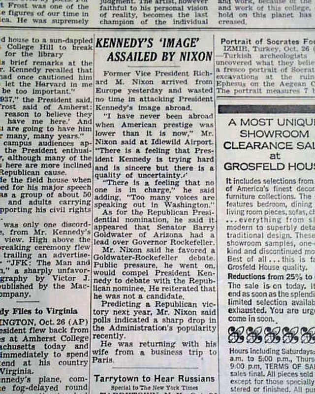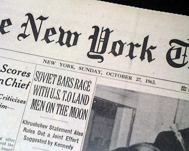 NEW YORK TIMES, Oct. 27, 1963  Obviously unknown at the time but less than 4 weeks later John F. Kennedy would be assassinated in Dallas.