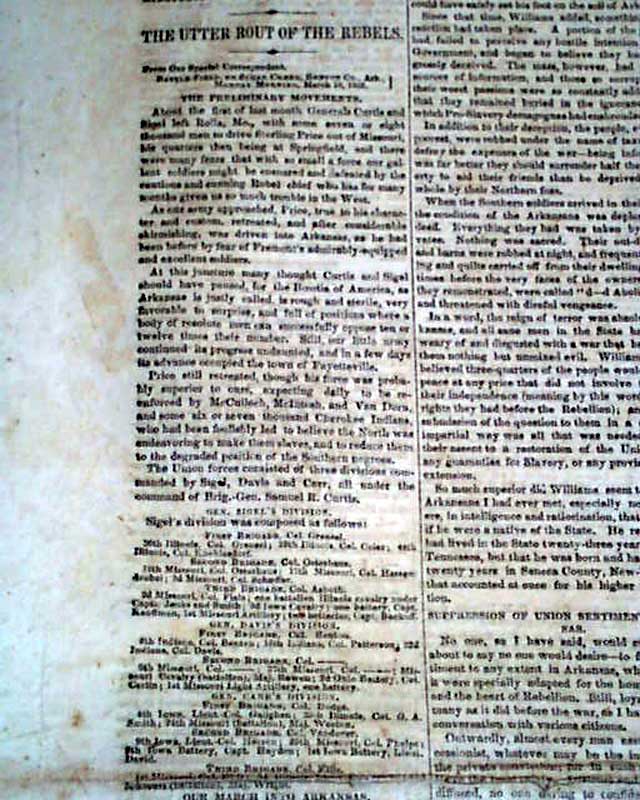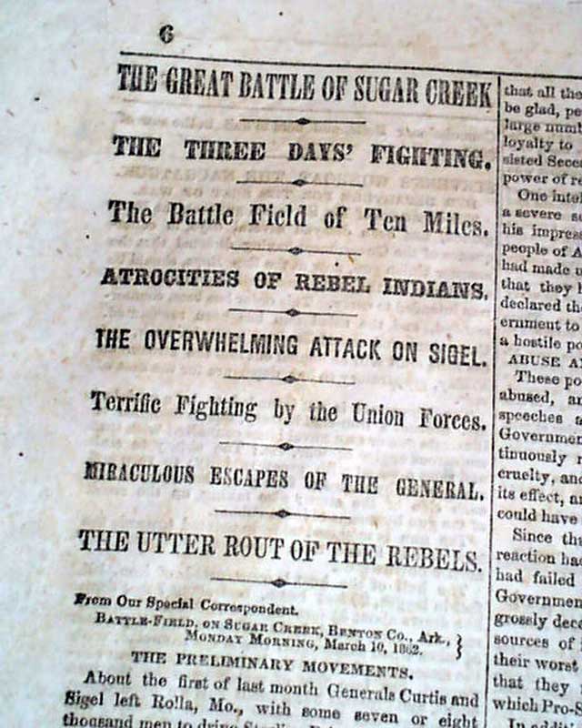 Pages 5, 6 & 7 have much Civil War reporting including a nice map headed: "Sugar Creek--The Battle Field" with related text.