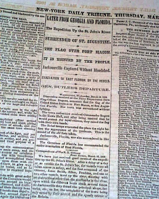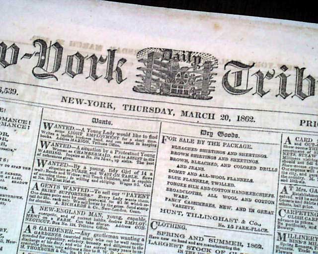 NEW YORK TRIBUNE, March 20, 1862  Page 2 contains one of the fascinating tidbits of history which delight collectors, in this case an inconspicuous advertisement for a theatrical production of Richard III at the Mary Provost Theater in New York--starring John Wilkes Booth.  See the photo for the complete ad which notes the: "...Engagement of the young Tragedian, J. WILKES BOOTH, whose appearance has been hailed with the Greatest Enthusiasm by houses crowded in every part..." with a bit more.