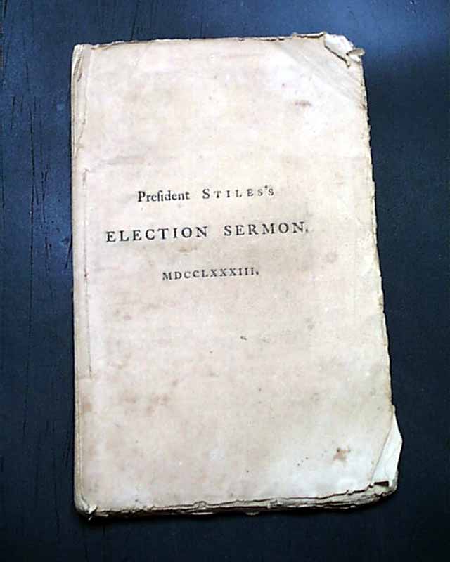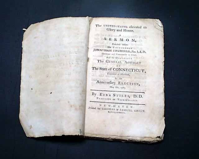 pamphlet: "The United States Elevated to Glory and Honor. A Sermon, Preached before His Excellency Jonathan Trumbull, Esq. L.L.D. Governor and Commander in Chief, And the Honorable The General Assembly of The State of Connecticut, Convened at Hartford, At the Anniversary Election, May 8th, 1783. By Ezra Stiles, D.D. President of Yale College.