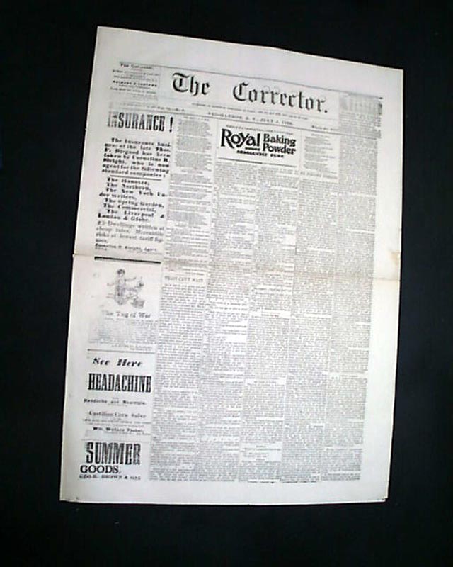 THE CORRECTOR, Sag Harbor, Long Island, New York, July 4, 1896 An early newspaper from this once-famous whaling town near the eastern end of Long Island, now more famous as a playground for the rich & famous who frequent the neighboring Hamptons.