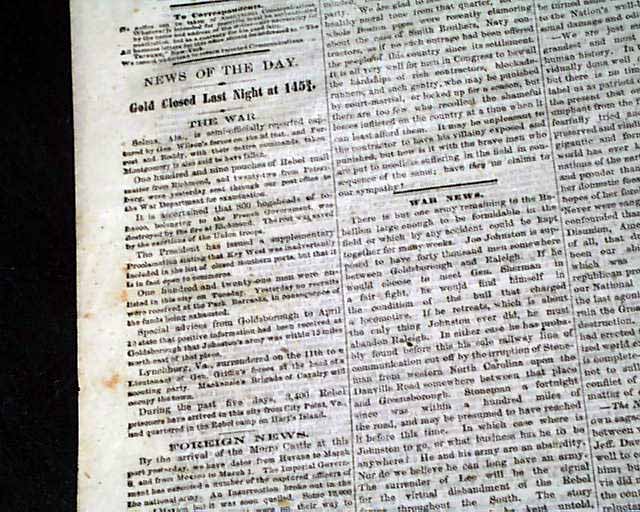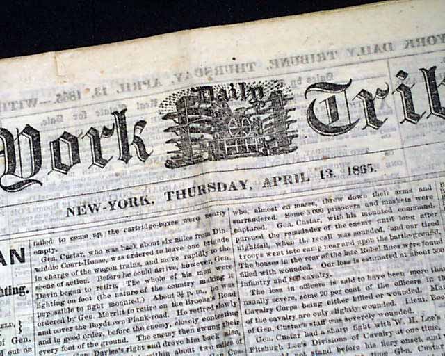 NEW YORK TRIBUNE, April 13, 1865 Despite the great news from the closing days of the Civil War, no one could have believed what would happen the next day: the assassination of Abraham Lincoln.