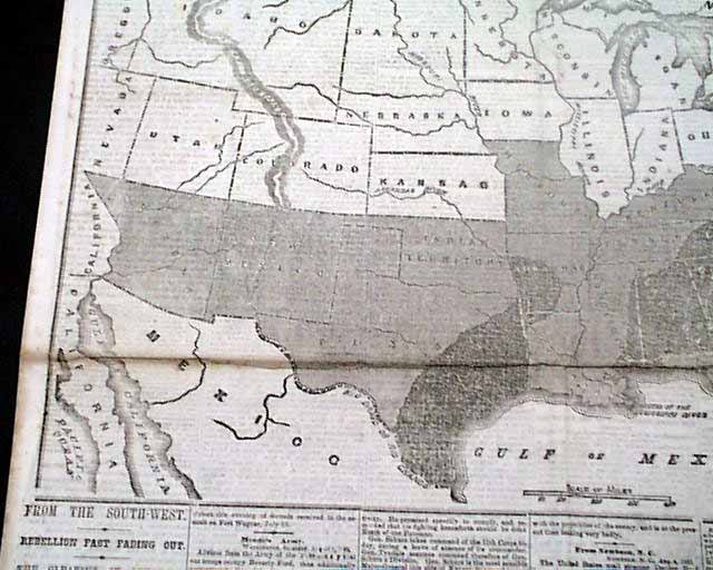 If there was ever a definitive map issue from the Civil War this might well be it, as it graphically portrays the progress of the Civil War. Certainly one of the best Yankee newspapers for display we have encountered.