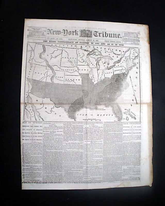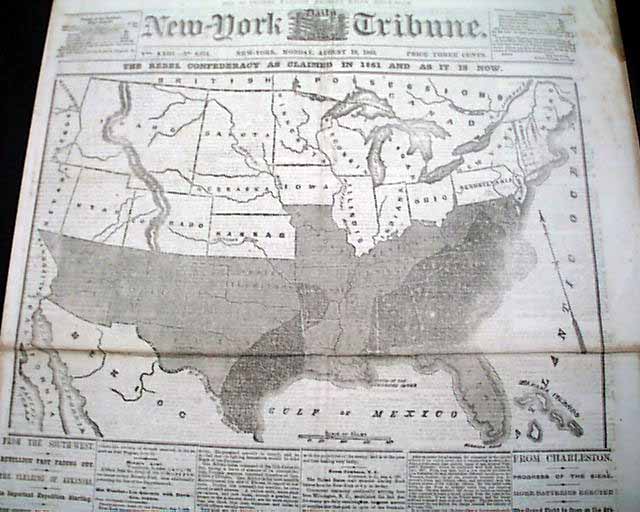 NEW YORK TRIBUNE, August 10, 1863 See the photo for the terrific & huge front page map, taking close to two-thirds of the front page, headed: "THE REBEL CONFEDERACY AS CLAIMED IN 1861 AND AS IT IS NOW" showing how the rebel states have shrunk in two years.