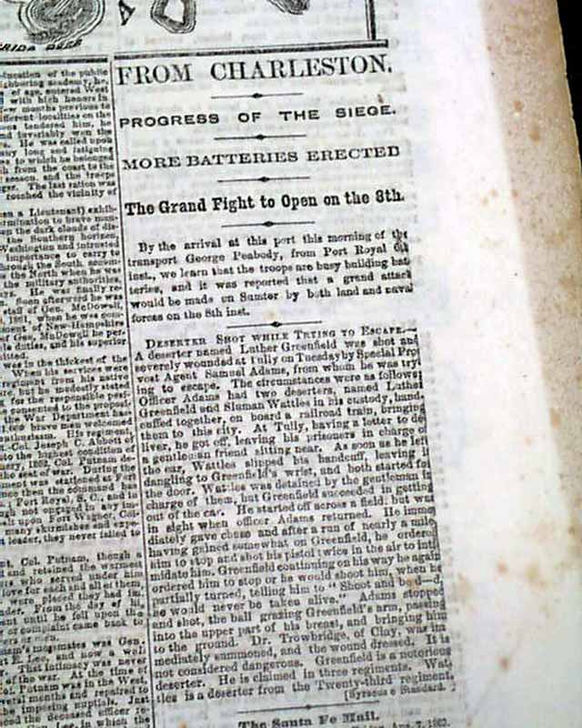 The remainder of the front page is taken up with various reports on the Civil War.