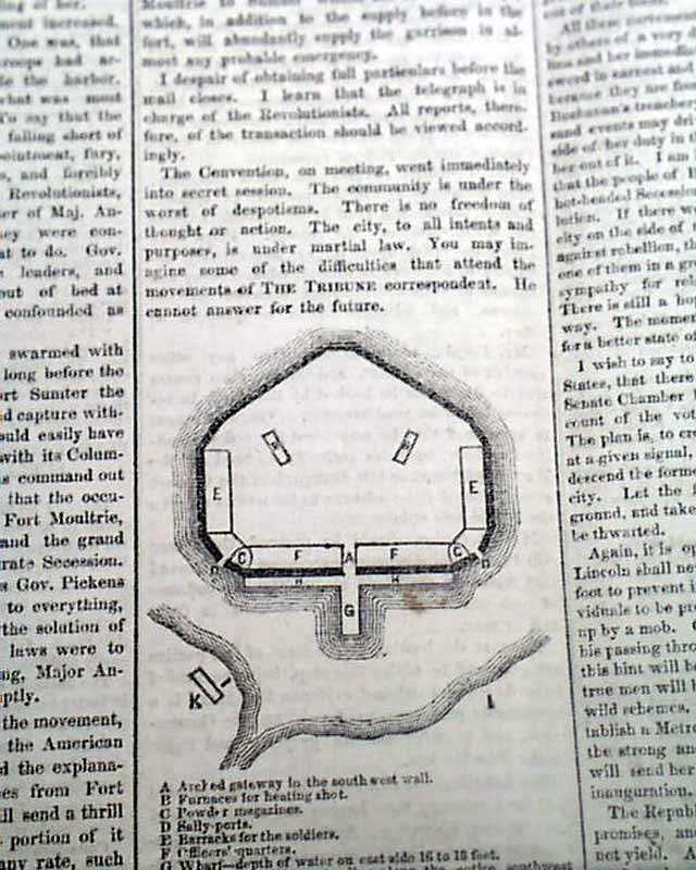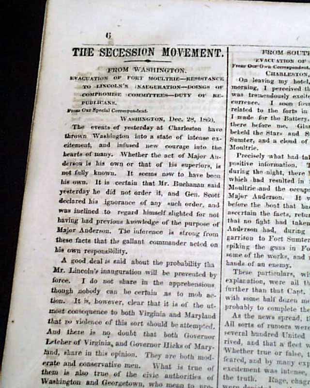 Much content on the secession movement, including a page 6 diagram of Fort Moultrie in Charleston Harbor. Other heads concerning the events just prior to the outbreak of the Civil War.
