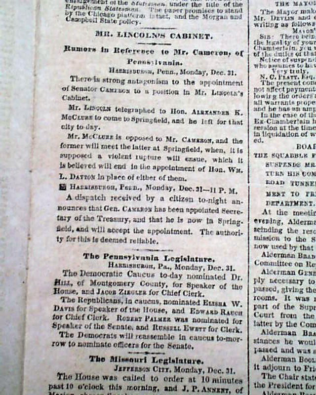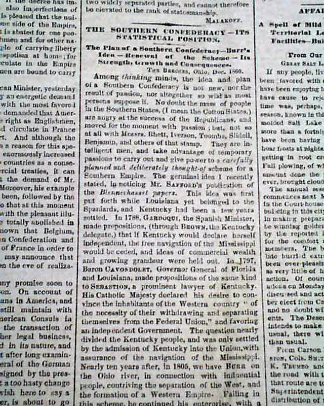 Items inside include: "The Southern Confederacy--It's Statistical Position--The Plan of the Southern Confederacy..." "Affairs In Utah" "Mr. Lincoln's Cabinet" and much more.