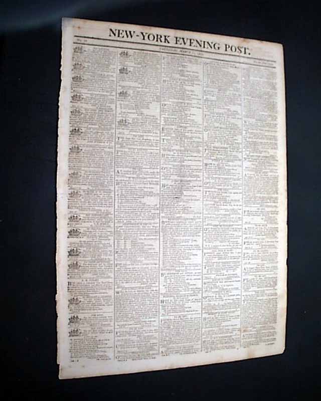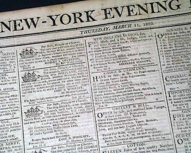 NEW YORK EVENING POST, March 11, 1802  This is the famous newspaper founded by Alexander Hamilton in 1801, still publishing today.