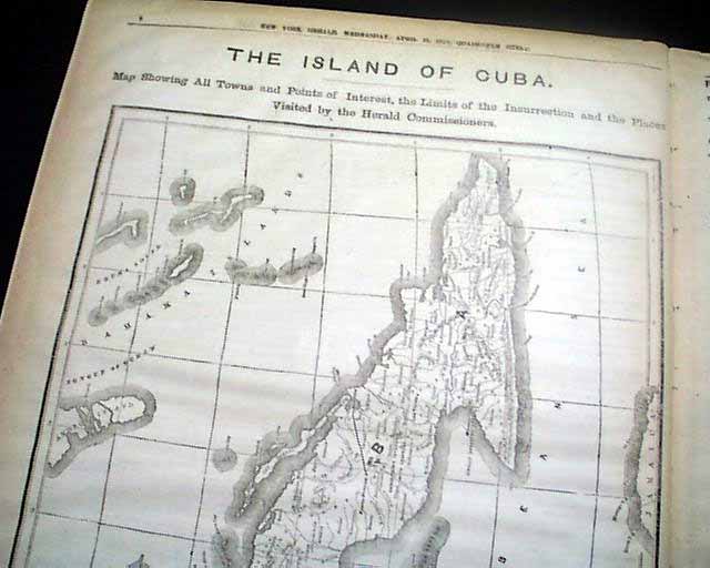 A special feature is an entire page taken up with a huge map of: "THE ISLAND OF CUBA" "Map Showing All Towns & Points of Interest, the Limits of the Insurrection and the Places Visited by the Herald Commissioners".