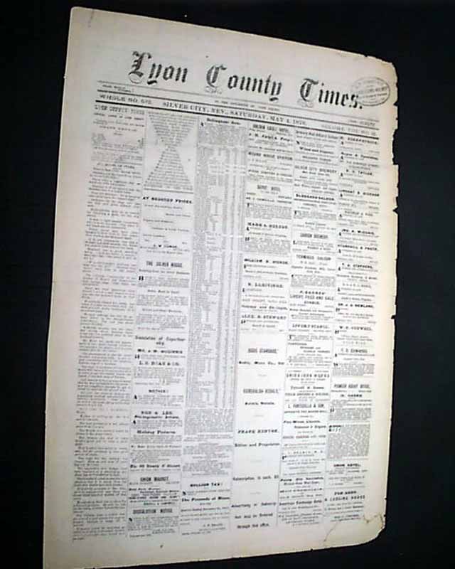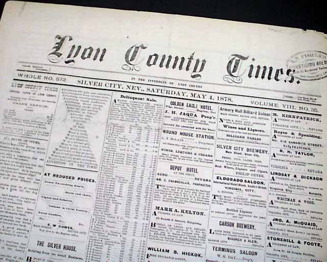 LYON COUNTY TIMES, Silver City, Nevada, May 4, 1878 Wikipedia offers much information on this early mining town: