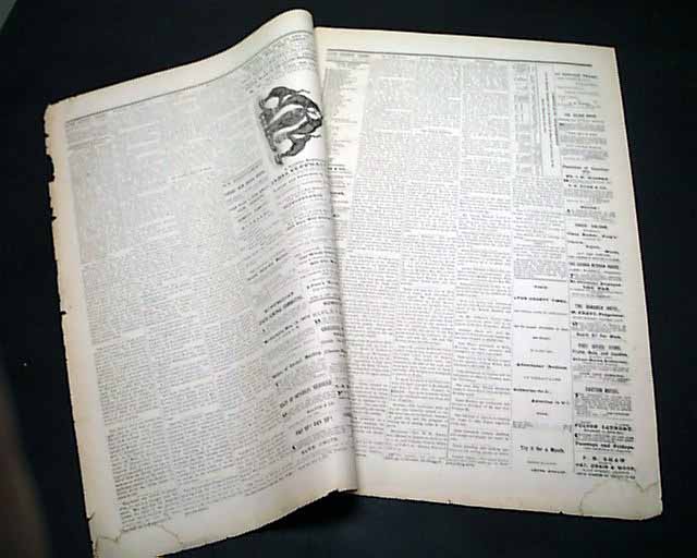 Four pages, never bound nor trimmed. minor chipping at the wide margins, news agent's stamp in the masthead, a few small archival mends, good condition.