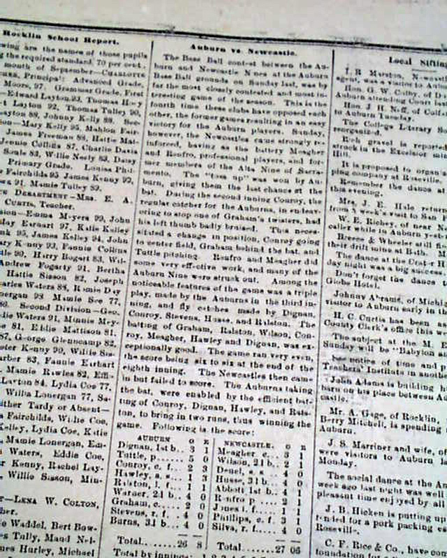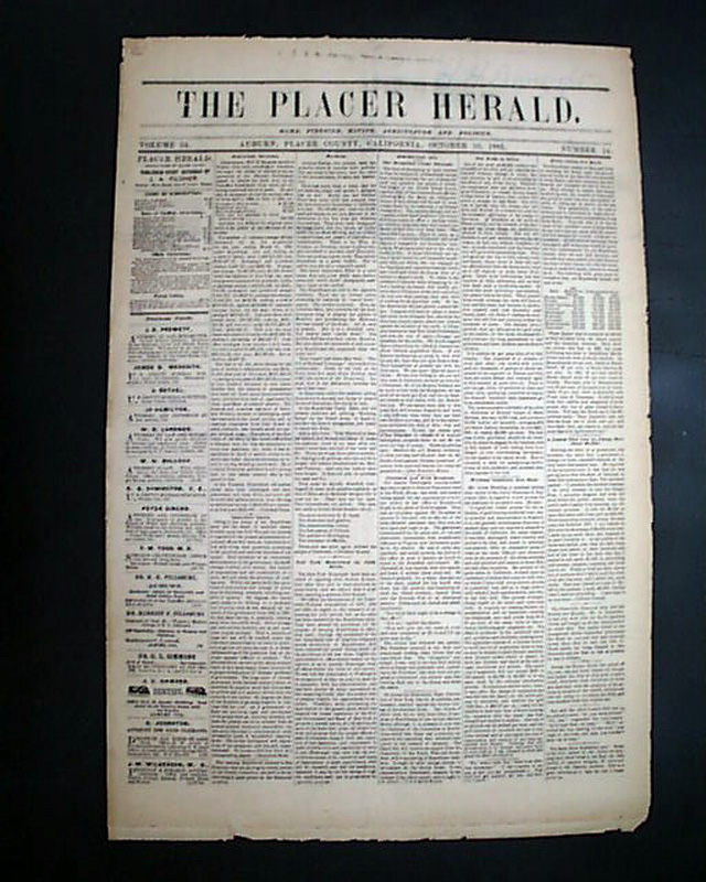 THE PLACER HERALD, Auburn, Placer County, California, Oct. 10, 1885  Placer mining in the Auburn area was very good, with the camp first becoming known as the North Fork Dry Diggings, later changed to Woods Dry Diggings. The area soon developed into a mining camp, and it was officially named Auburn in 1849.