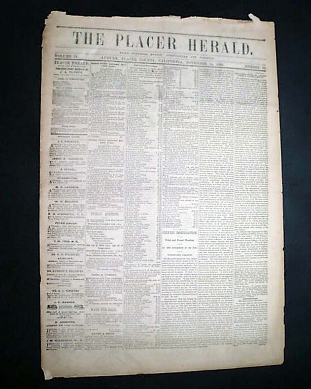 THE PLACER HERALD, Auburn, Placer County, California, Nov. 14, 1885 Placer mining in the Auburn area was very good, with the camp first becoming known as the North Fork Dry Diggings, later changed to Woods Dry Diggings. The area soon developed into a mining camp, and it was officially named Auburn in 1849.