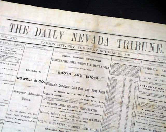 THE NEVADA TRIBUNE, Carson City, Nevada, Oct. 30, 1879 Coin collectors are very familiar with this town for the mint which produced the much-desired gold & silver coins that bear the "C.C." mint mark.