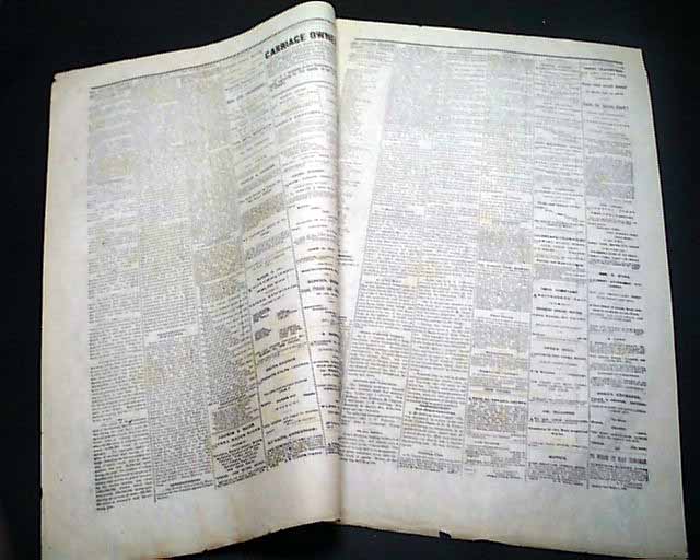 Four pages, never bound nor trimmed, news agent's stamp in the masthead, light dirtiness to the front page, good condition.