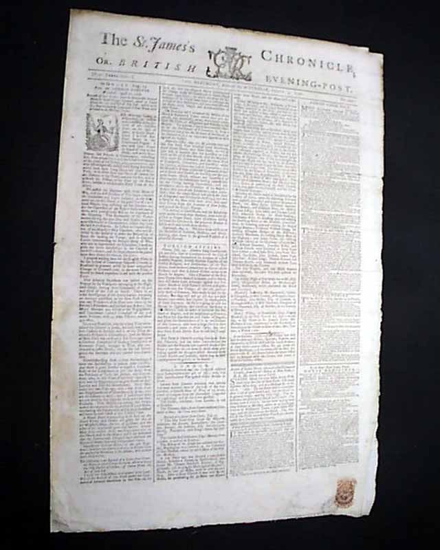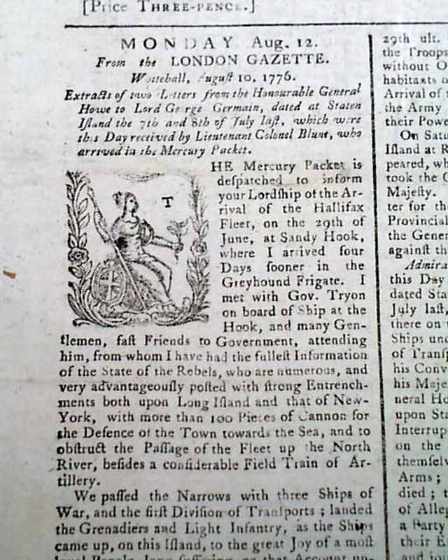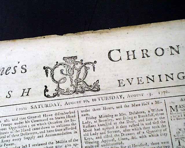 THE ST. JAMES'S CHRONICLE OR BRITISH EVENING POST, London, Aug. 13, 1776  By far the most historic report is a brief yet historically significant item on the front page which reads: "Advice is received that the Congress resolved upon independence the 4th of July; and, it is said, have declared War against Great Britain in Form.