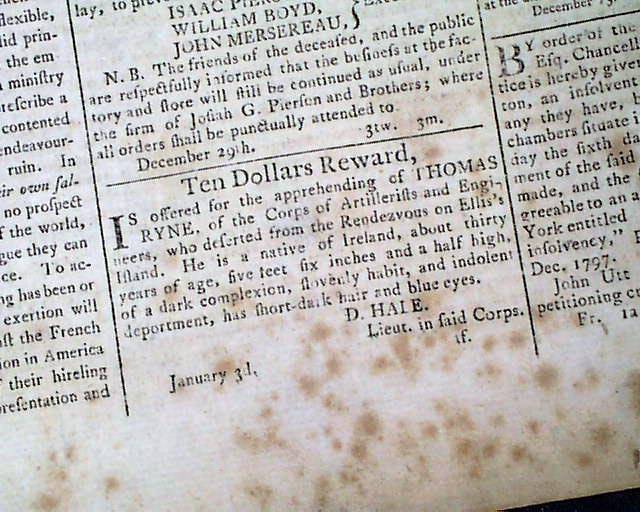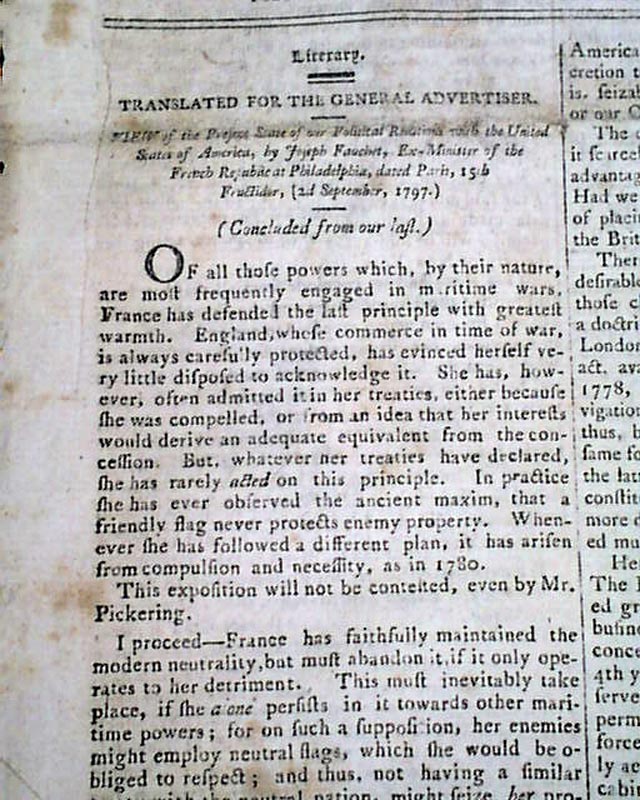 A quite rare title by Philip Freneau which lasted from March 13, 1797 to August 30, 1798.