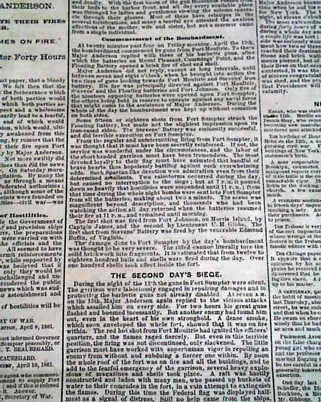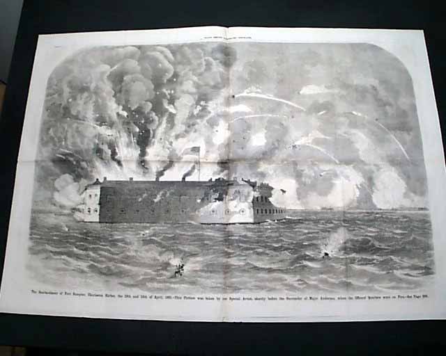But certainly the prime feature of this issue is the terrific four page centerfold which is a huge print captioned: "The Bombardment of Fort Sumpter, Charleston Harbor, the 12th and 13th of April, 1861...". Typically this print is cut in half and has various wear as more issues were trimmed. But this issue was never bound nor trimmed so it folds out to one very large print with no cuts & essentially no wear or tears. An uncommonly nice print on the opening battle of the Civil War.