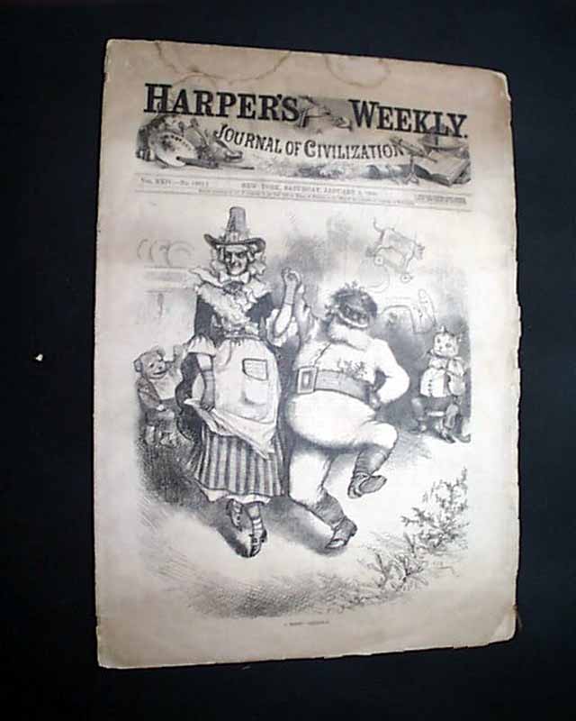 HARPER'S WEEKLY, New York, January 3, 1880 The entire front page is a Thomas Nast print captioned: "A Merry Christmas" showing Santa Claus dancing with Mother Goose.