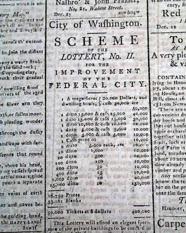 The back page has an ad for a lottery: "For the Improvement of the Federal City" then under construction.