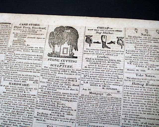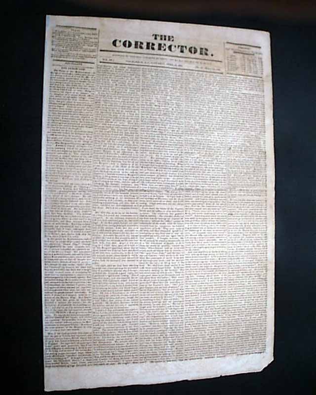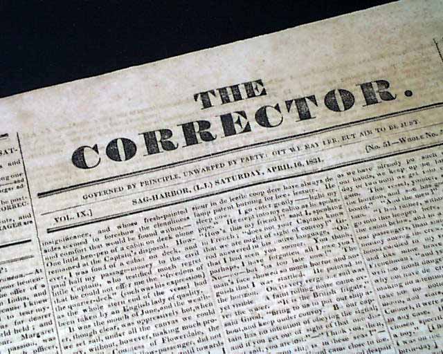THE CORRECTOR, Sag Harbor, Long Island, New York, April 16, 1831  An early newspaper from this once-famous whaling town near the eastern end of Long Island, now more famous as a playground for the rich & famous who frequent the neighboring Hamptons.
