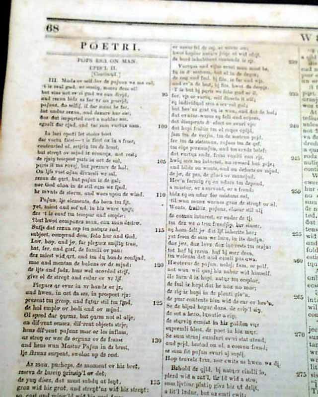 During this time there was a movement afoot to create a new mode of writing & spelling: to spell words as they sounded, phonetically. Obviously it never caught on, but it did result in this unusual newspaper which is almost entirely written phonetically. This newspaper lasted a bit over 3 years.