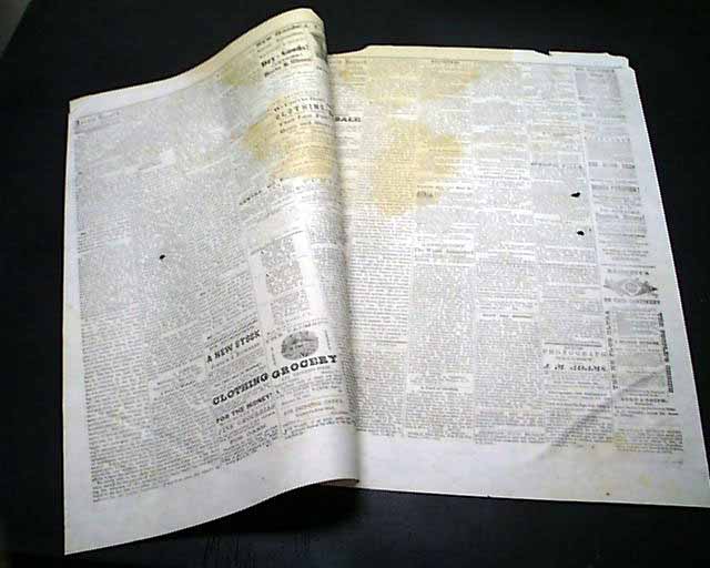 Various news & ads of the day, four pages, an archival mend at a portion of the blank spine, some light staining and a small piece from the top margin not affecting type.