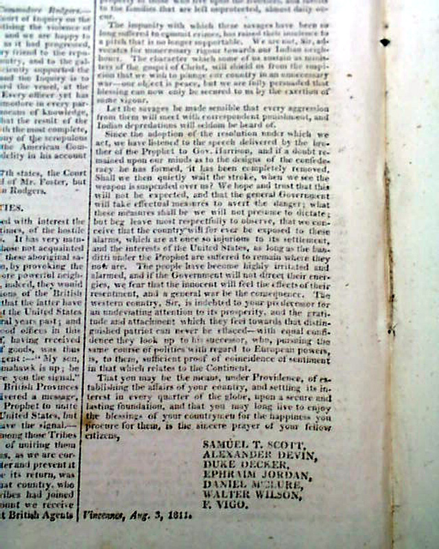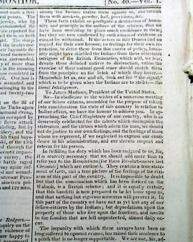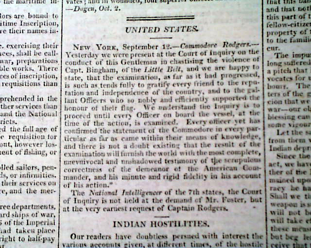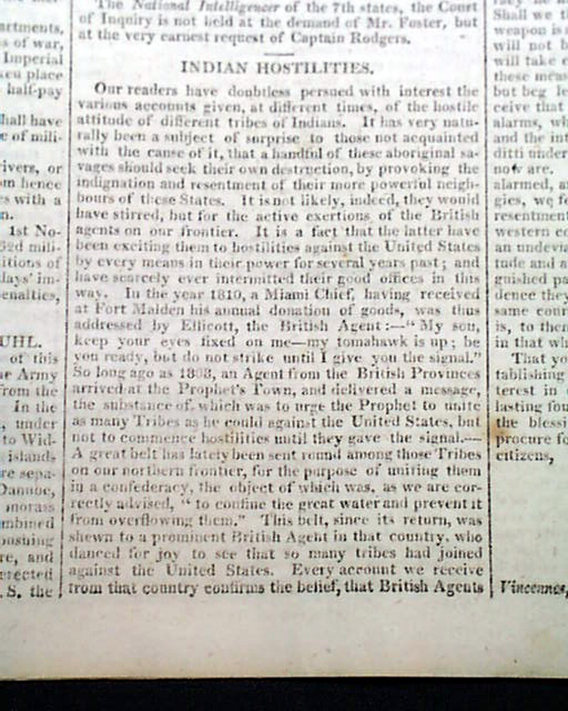 The front page has a letter: "To Napoleon the First". Page 4 has: "United States" concerning the situation with the Little Belt that would lead to the War of 1812. Also: "Indian Hostilities".