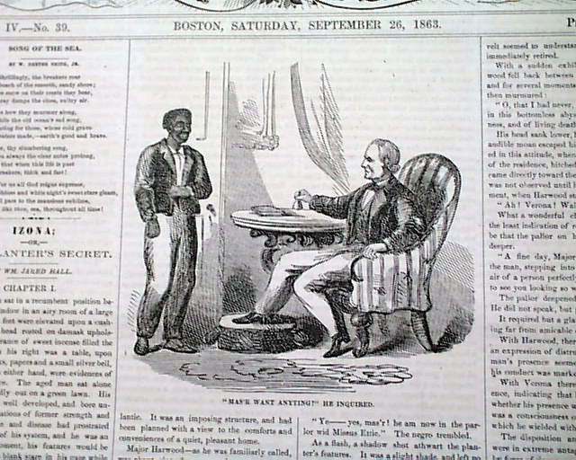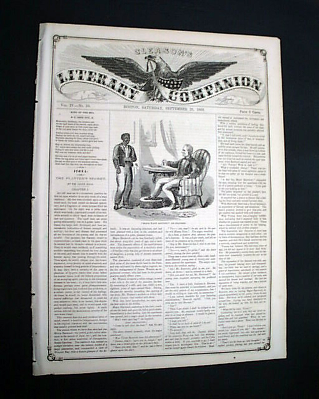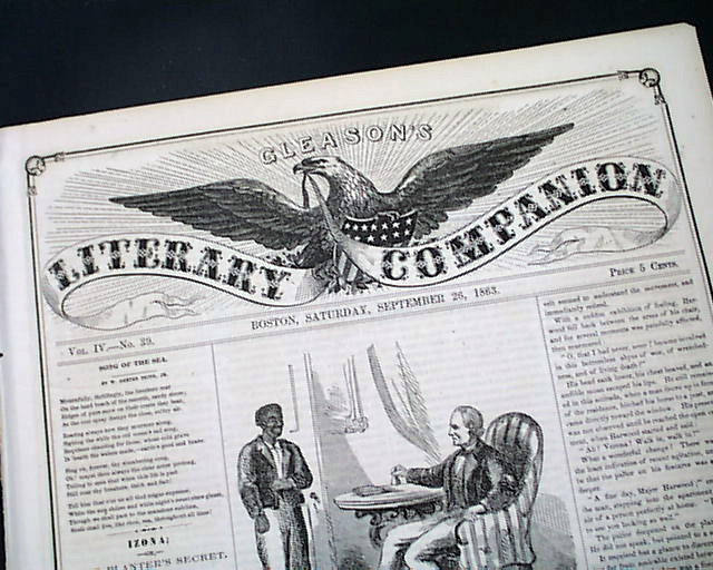 GLEASON'S LITERARY COMPANION, Boston, Sept. 26, 1863 This was one of several titles published by the successful Frederick Gleason, known as the "father of illustrated journalism" with this very successful "Gleason's Pictorial Drawing-Room Companion" in 1851, modelled after the "Illustrated London News" & later copied by both Harper and Leslie.