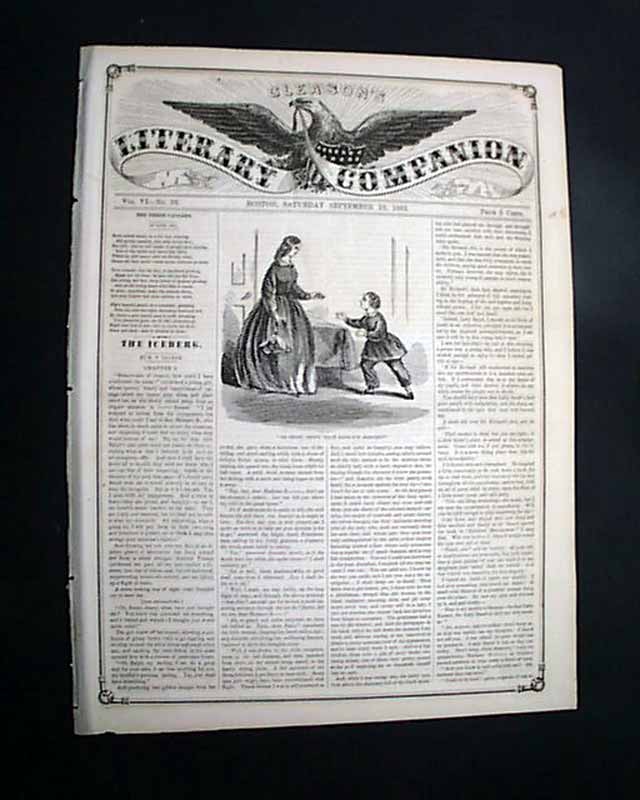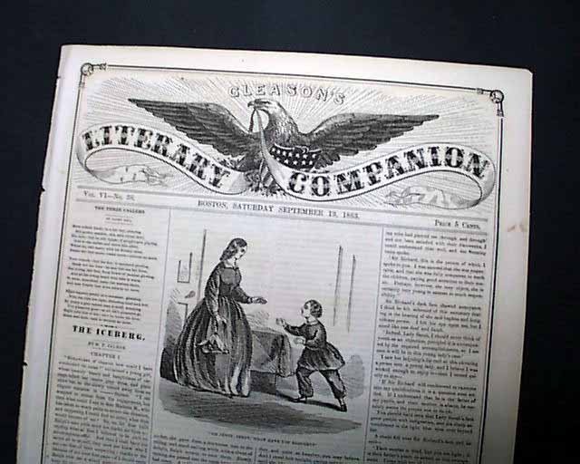GLEASON'S LITERARY COMPANION, Boston, Sept. 19, 1863 This was one of several titles published by the successful Frederick Gleason, known as the "father of illustrated journalism" with this very successful "Gleason's Pictorial Drawing-Room Companion" in 1851, modelled after the "Illustrated London News" & later copied by both Harper and Leslie.
