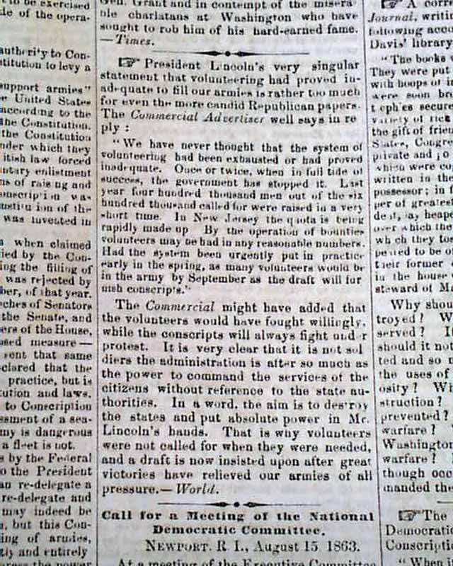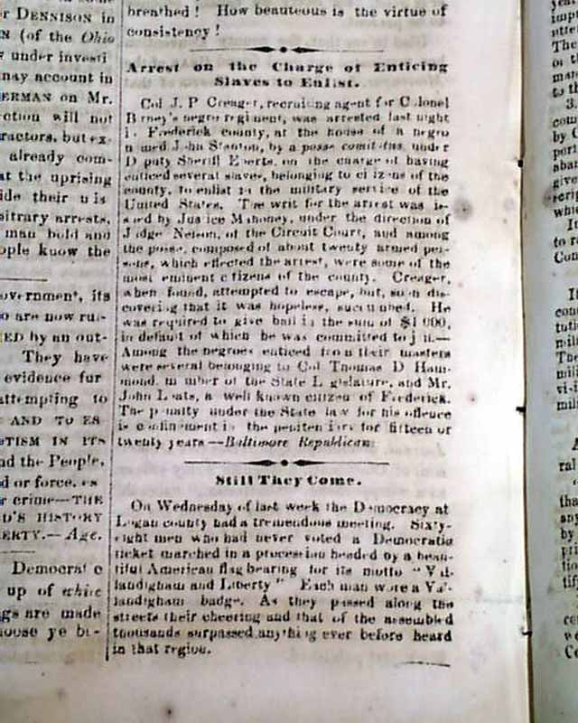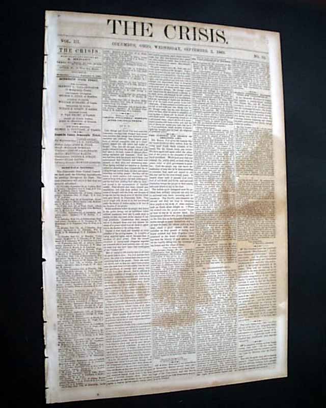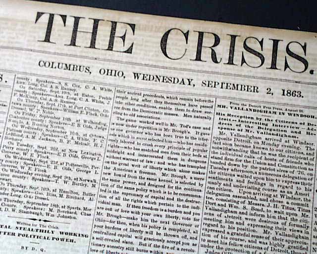 THE CRISIS, Columbus, Ohio, Sept. 2, 1863  This anti-war newspaper insisted slavery should not be abolished, so consequently much content has an anti-North bias.