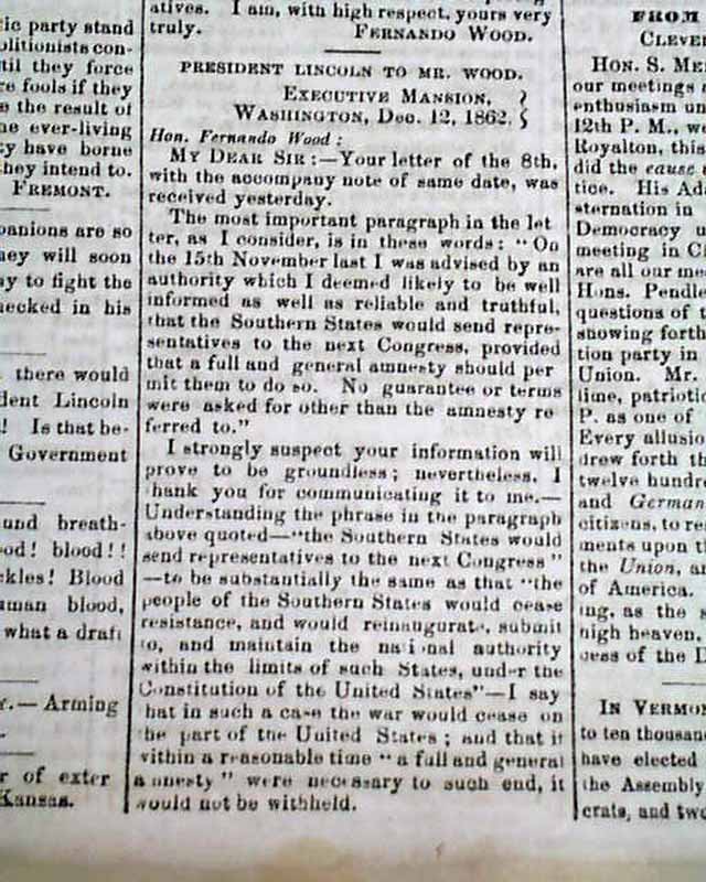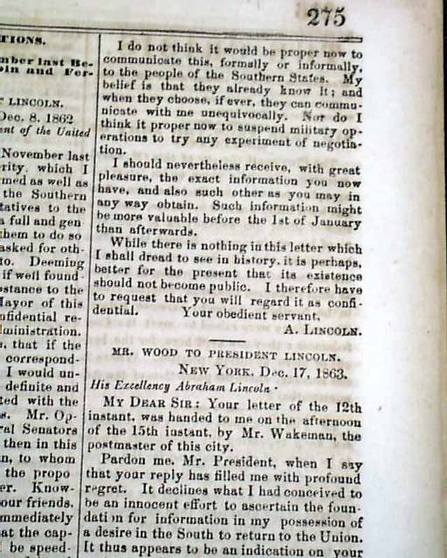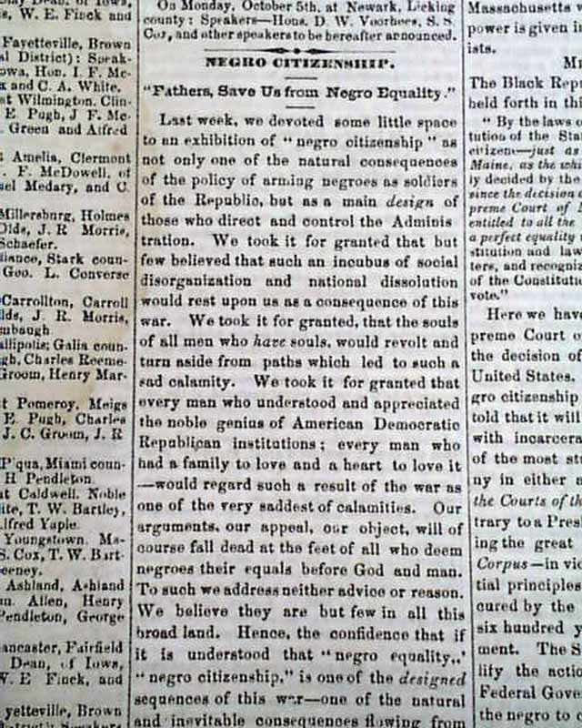 Other items include: "Negro Citizenship - Fathers, Save Us from Negro Equality" "President Lincoln to Mr. Wood signed in type: A. Lincoln, with Mr. Wood's response to Lincoln; "No Peace Until Slavery is Torn Out, Root and Branch" and much more.