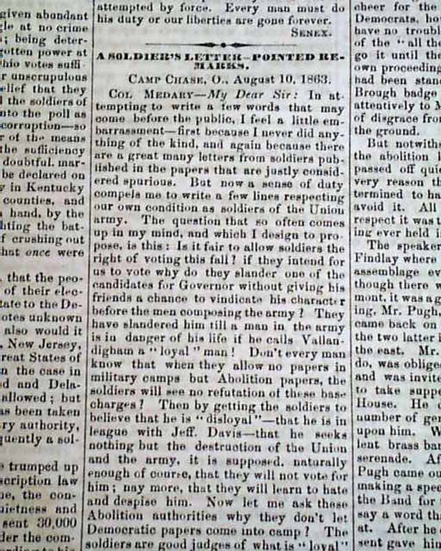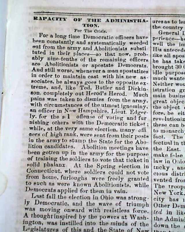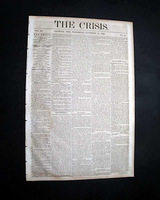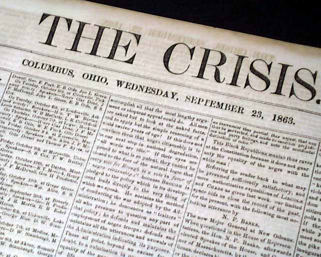 THE CRISIS, Columbus, Ohio, Sept. 23, 1863  This anti-war newspaper insisted slavery should not be abolished, so consequently much content has an anti-North bias.