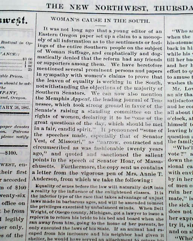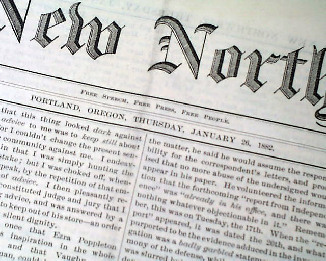 THE NEW NORTHWEST, Portland, Oregon, Jan. 26, 1882 A great title for a newspaper from this part of the country in the 19th century.