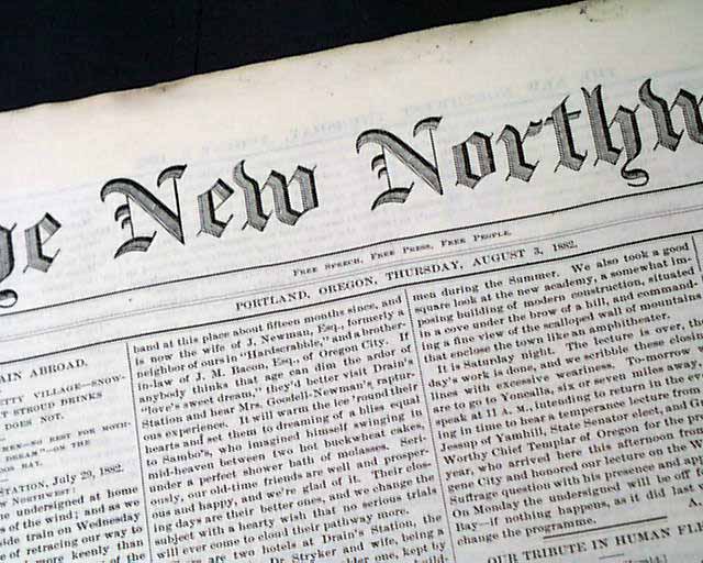 THE NEW NORTHWEST, Portland, Oregon, Aug. 3, 1882 A great title for a newspaper from this part of the country in the 19th century.
