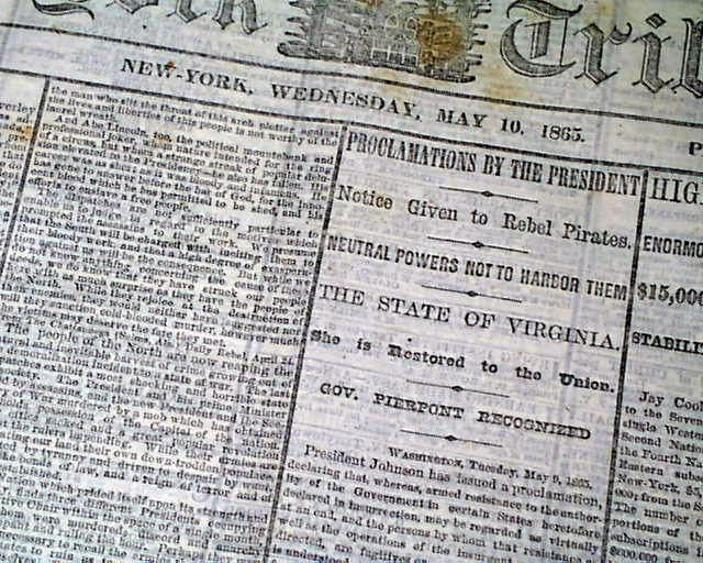 NEW YORK TRIBUNE, May 10, 1865  All columns on all 8 pages are black-bordered for the death of President Lincoln.