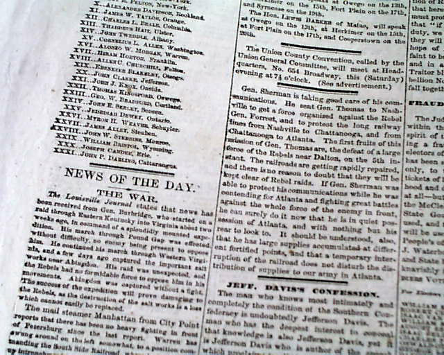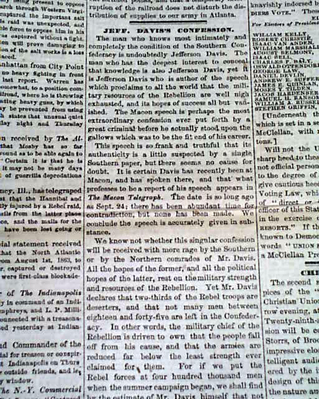 Inside includes: "Jeff. Davis' Confession" "Jeff. Davis on the Desperate Condition of The Confederacy--Grant's Late Movements in Virginia" and more.