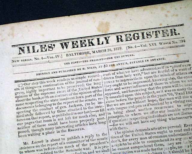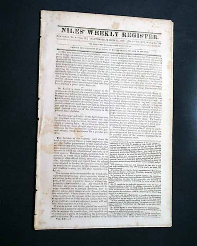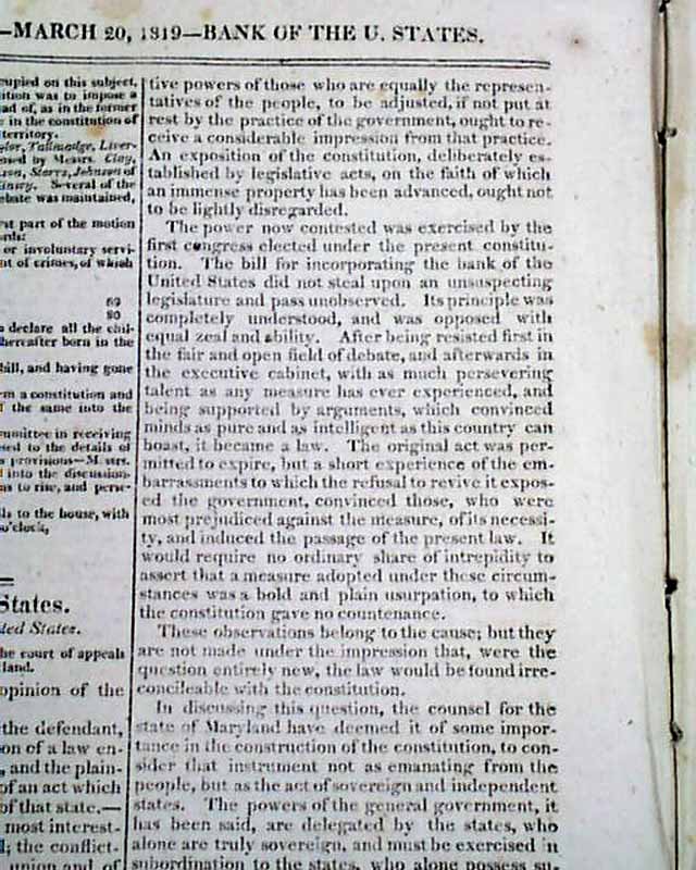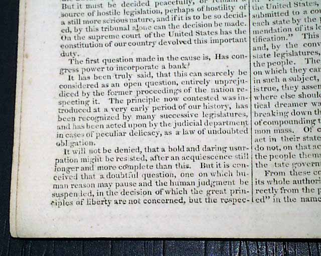 NILES' WEEKLY REGISTER, Baltimore, March 20, 1819 Close to eight pages are taken up with what one website lists as number 3 of "The Ten Most Significant Supreme Court Decisions Of All Time" (#2 is Roe vs. Wade; #1 is the Dred Scott Decision).