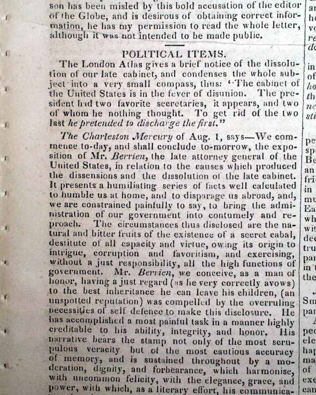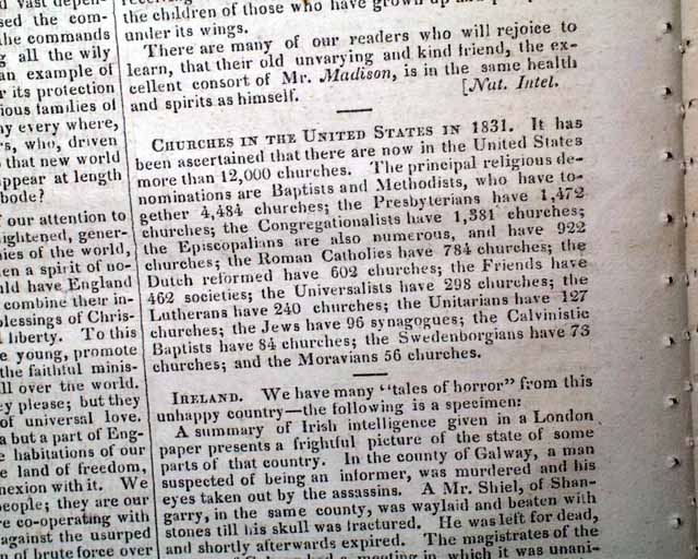 The report is headed: "Insurrection Of The Blacks" and takes over a full page with the details, one report noting: "...they were mere marauders bent on plunder, but having steeped their hands in human sacrifice, became infuriated and, like blood hounds, pursued the game of murder in mere wanton sport. As they followed their desolating career from family to family they pressed all the negro men whom they found into their ranks..." with much more.