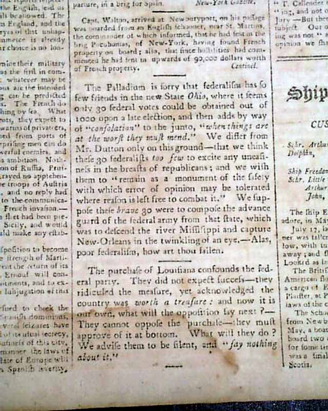 Page 3 has a report noting: "The Palladium is sorry that federalism has so few friends in the new State Ohio, where it seems only 30 federal votes rule be obtained..." with more.