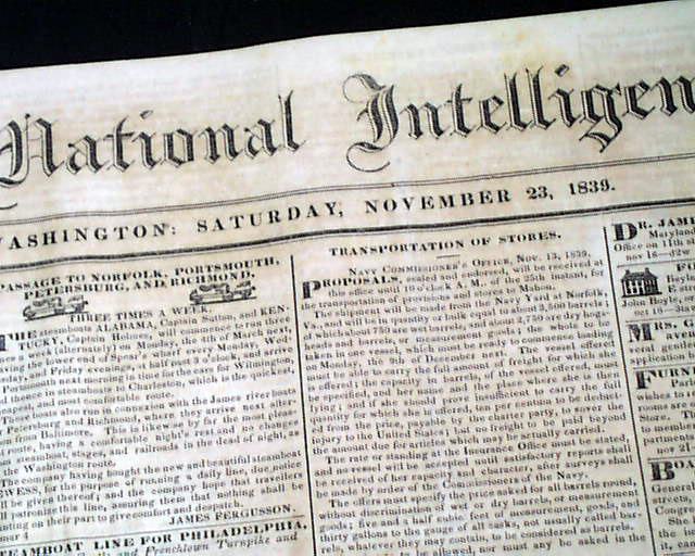 DAILY NATIONAL INTELLIGENCER, Washington, D.C., Nov. 23, 1839 The most intriguing report is a lengthy page 2 article headed: "The Oregon Expedition" which is a detailed travelogue of what is famously known as the "Peoria Party".