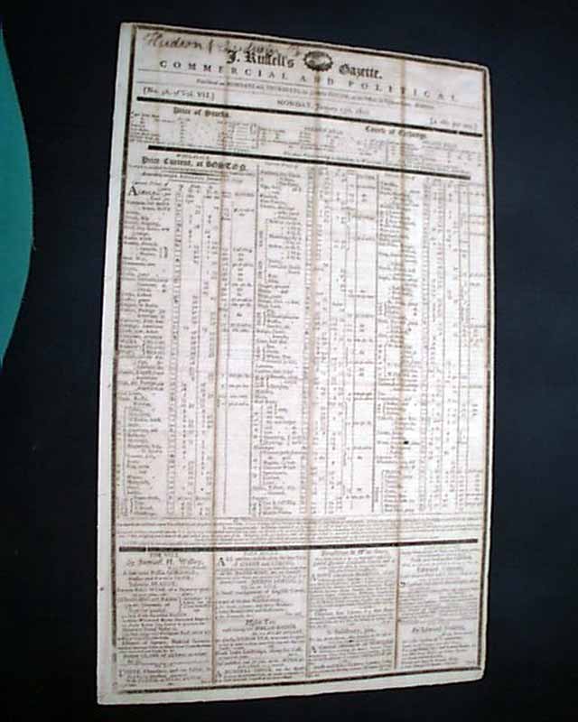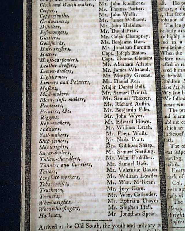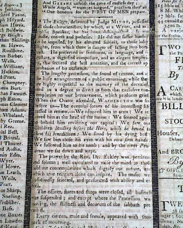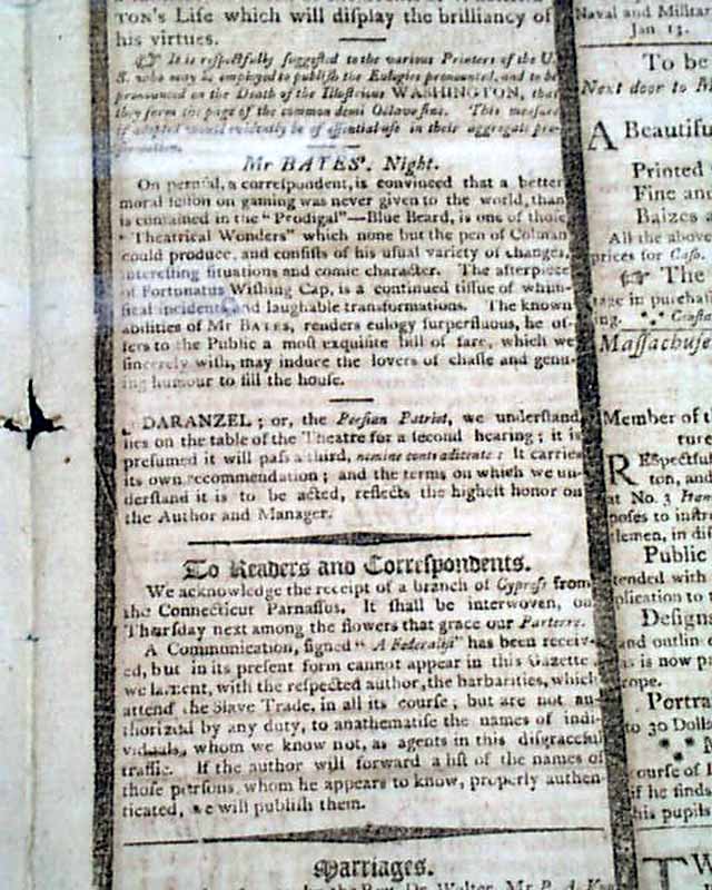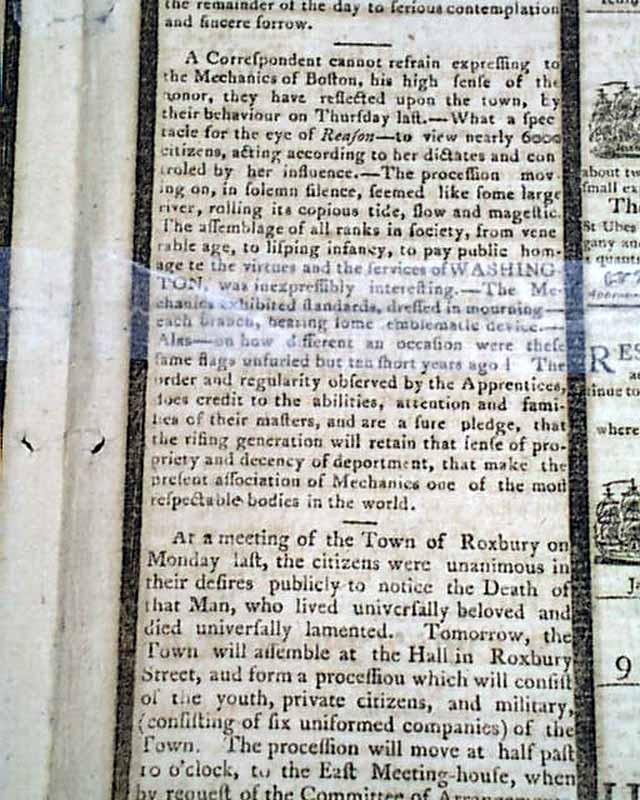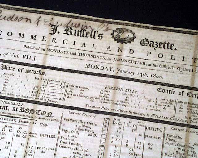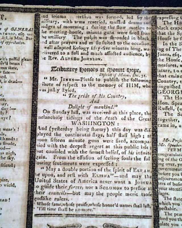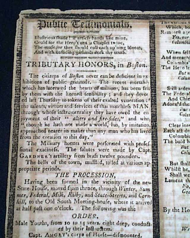 J. RUSSELL'S GAZETTE, COMMERCIAL & POLITICAL, Boston, Jan. 13, 1800 The front page has wide, black mourning rules, and the borders and all columns on pages 2, 3 & 4 also have wide, black mourning rules for the death of George Washington.