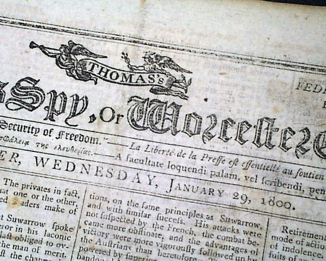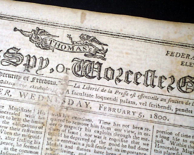 THOMAS'S MASSACHUSETTS SPY OR WORCESTER GAZETTE, Jan. 29 and Feb. 5, 1800 A pair of consecutive newspapers from shortly after the death of George Washington.