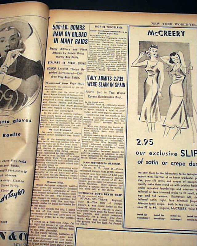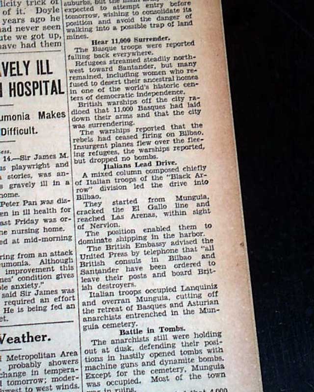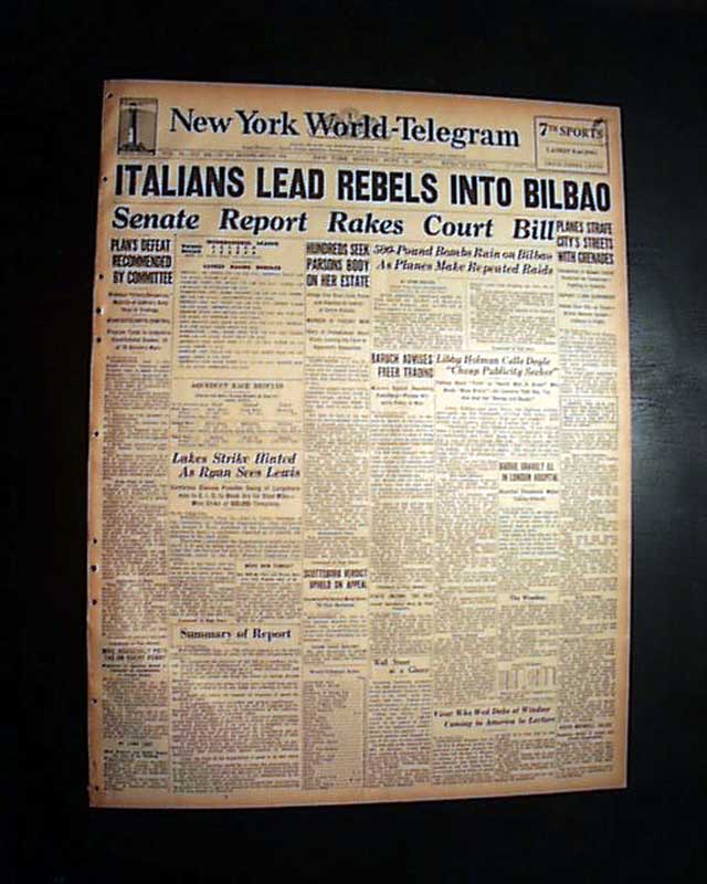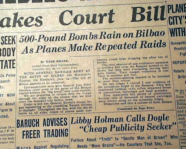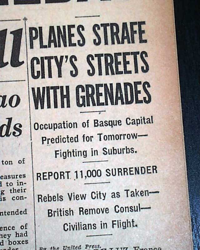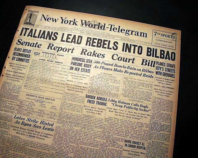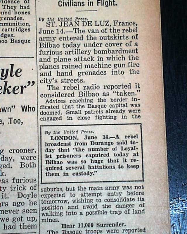 The front page has a nice banner headline: "ITALIANS LEAD REBELS INTO BILBAO" with subheads. (see images) Nice for display.
