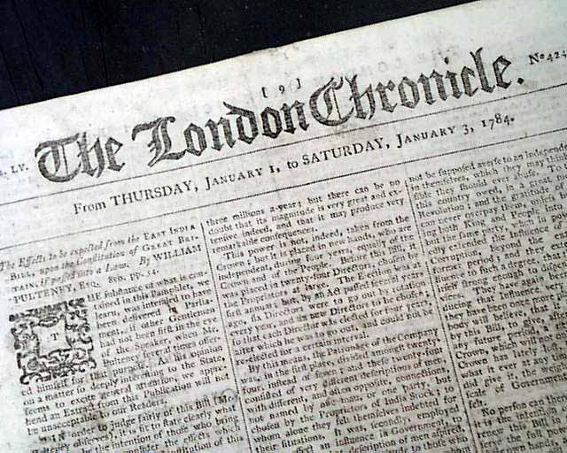 THE LONDON CHRONICLE, England, Jan. 3, 1784  Page 3 contains a very nice report which includes: "...brings over the insignia of the Cincinnatus's Society. This association, whose regulations are soon to be published, was formed by American Officers as a monument of their fraternity & union in the good cause..." going on to note other details.