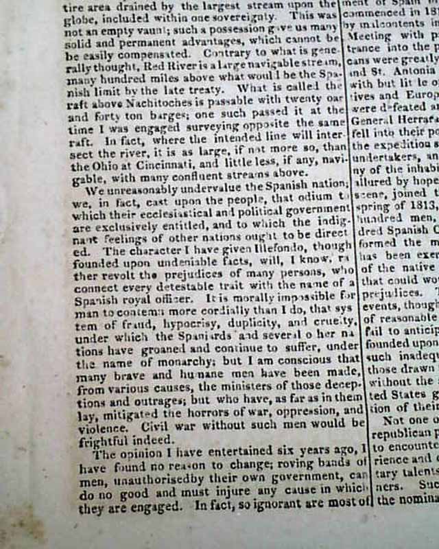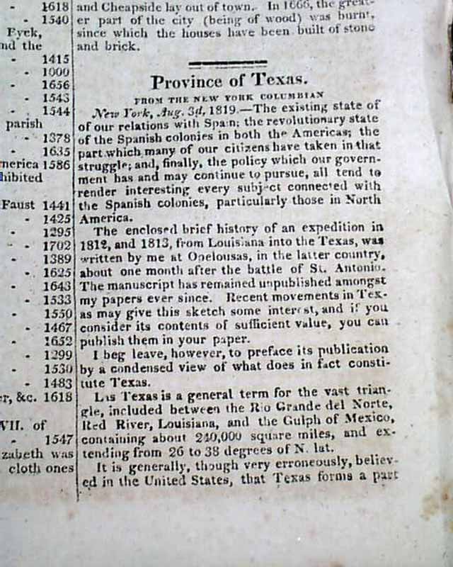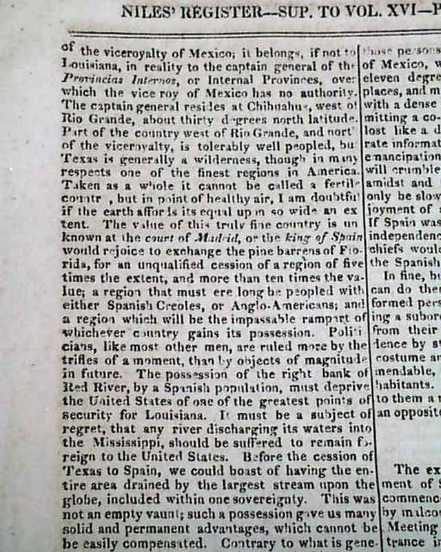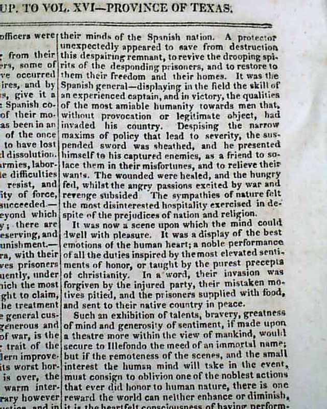 Page 42 begins: "Province of Texas" which includes a "...brief history of an expedition in 1812 and 1813, from Louisiana into the Texas..." and "...The expedition carried on against the government of Spain in the Provine of Texas, which commenced in 1812, by a body of Americans, sided by malcontents in the country, is now at an end. Meeting with partial success on their first entrance into the province, the hopes of the Americans were greatly inflated...", with much more taking nearly 3 1/2 pages.