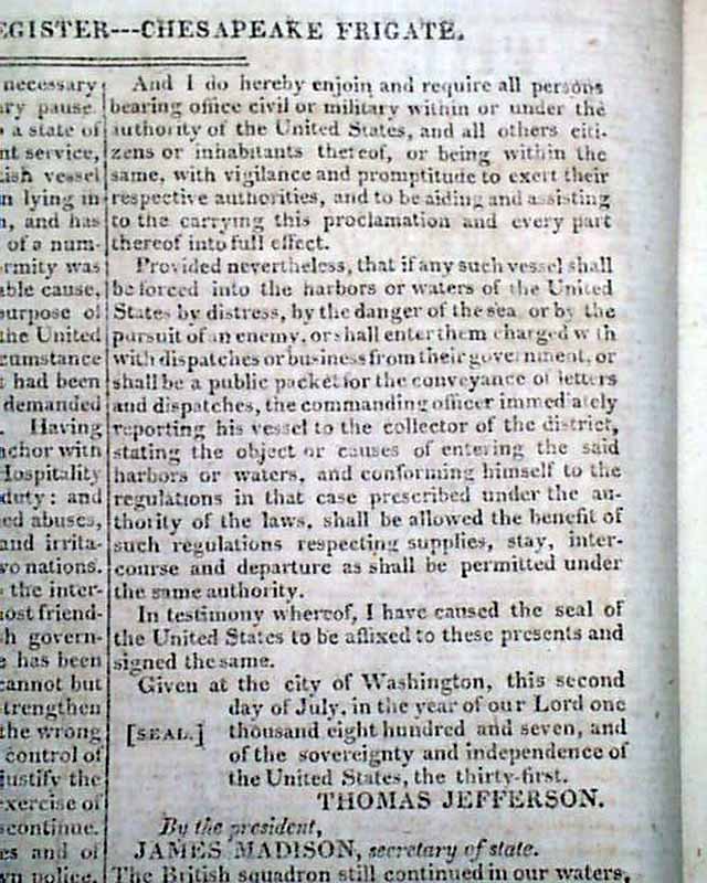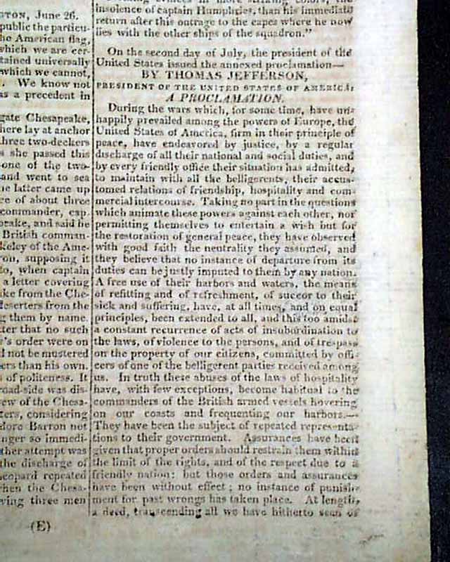 The Chesapeake vs. the Leopard, with a Jefferson Proclamation...