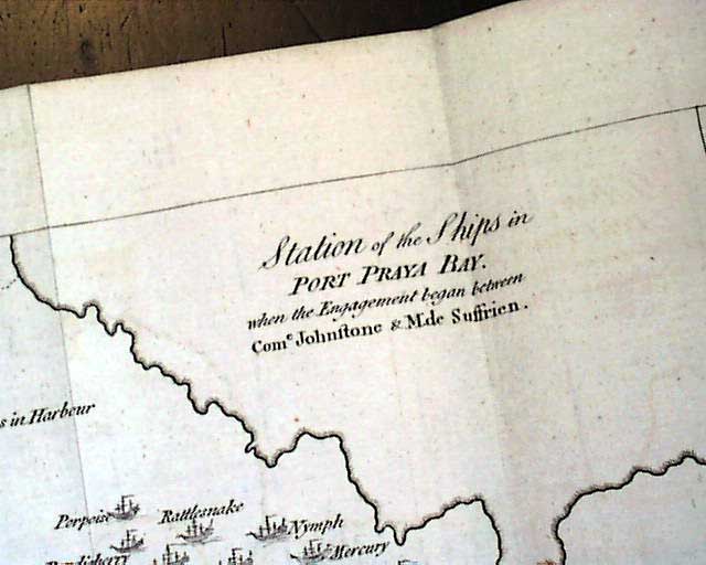 Included is the foldout map titled "Station of the Ships in Port Praya bay when the Engagement began between Com. Johnstone & M'de Suffrien". This was a naval battle relating to the Revolutionary War, fought off the coast of Africa. The map folds out to 8 1/4 by 10 1/2 inches & is in very nice condition.