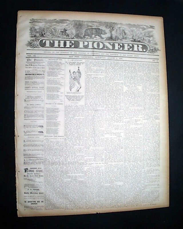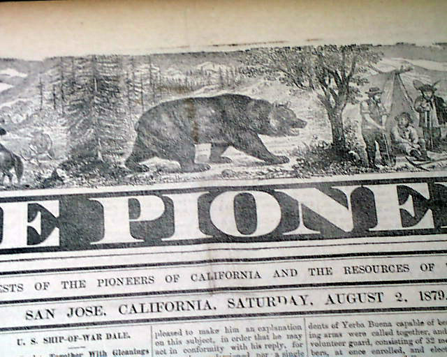 THE PIONEER, San Jose, California, Aug. 2, 1879 The masthead notes: "Devoted To The Interests Of The Pioneers of California And the Resources of the Golden State."